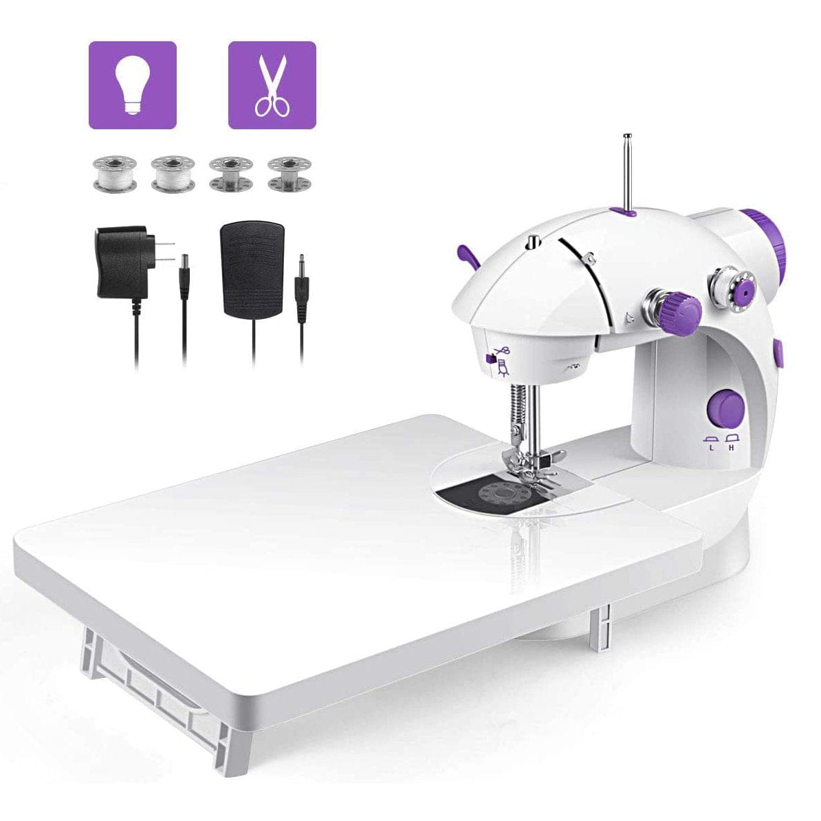 Easy to Operate: Can be used easily by all beginners, and professionals. Equipped with a thread cutter, it allows you to adjust the tension and speed as preferred, making the job easier. Dual Powering Methods: It can be powered by both household chargers or with 4 AA batteries. So if you need to use it outside your home, simply pop in the batteries and power it up.